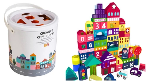 DREWNIANE KLOCKI DLA DZIECI W WIADERKU DO ZABAWY 100 ELEMENTÓW