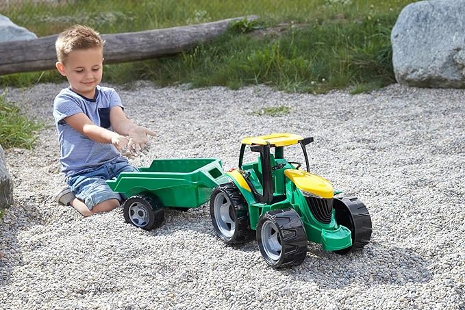 Traktor z przyczepką marki LENA to wszechstronna zabawka, idealna do zabawy w każdych warunkach. Wyposażony w wytrzymałe, wysokie koła, traktor młodemu użytkownikowi umożliwia pokonywanie przeszkód zarówno wewnątrz domu, jak i na zewnątrz - na piasku, w błocie czy na trawie.