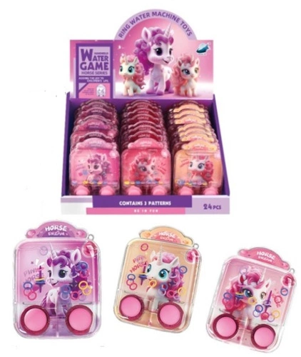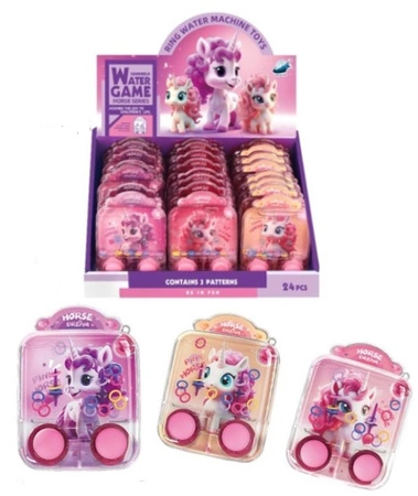 GRA WODNA JEDNOROŻCE MŁODE*24 BOX, pak 384/192 gre zręcznościowa z dwoma guziczkami, trzy różne wzory, display 24, wymiary display: 20 x 25 x 11 cm wymiary gierki: 10 x 2 x 7,5 cm