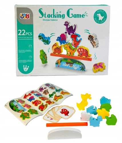 Zestaw zawiera 22 elementy, które sprawią, że Twoje dziecko zanurzy się w fascynującym świecie dinozaurów. Równoważnia, naklejki, figurki dinozaurów i karty to wszystko, co potrzebne jest do stworzenia unikalnych konstrukcji. Zadaniem maluchów jest ułożenie dinozaurów na równoważni zgodnie z wskazówkami na kartach, dbając o to, aby konstrukcja utrzymała się i nie zawaliła się.