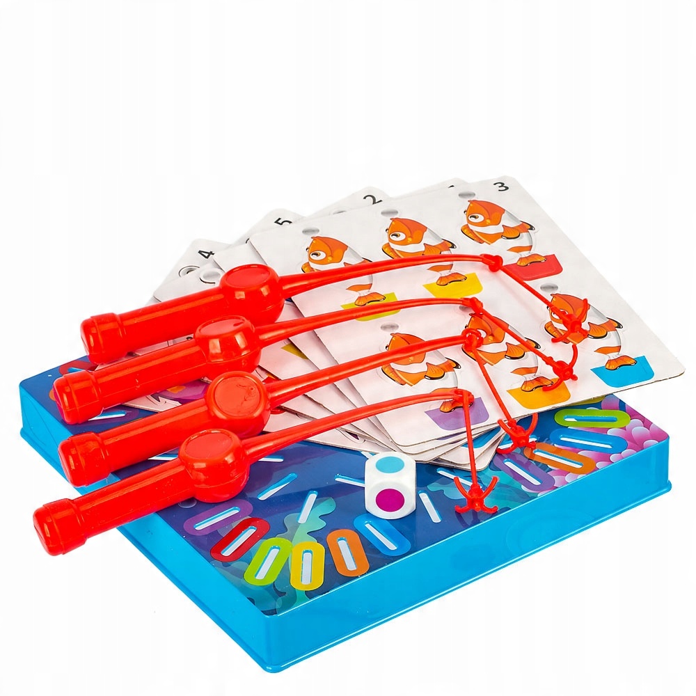 Fantastyczna zabawka, która zapewni Twojemu dziecku mnóstwo radości i zabawy! Nasz zestaw zawiera plastikową planszę z otworami, 30 kolorowych rybek, kostkę do gry oraz 4 wędki. Zabawa polega na łowieniu rybek zgodnie z kolorami wskazywanymi przez kostkę. Prawidłowo złapane rybki wkładasz do odpowiednich otworów w swoim rogu planszy, a te, które nie trafią, wracają do gry. To doskonały sposób na rozwijanie umiejętności manualnych, spostrzegawczości i koordynacji ruchowej u najmłodszych.