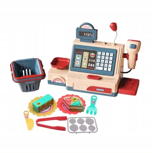 Kasa sklepowa została zaprojektowana w taki sposób, aby zapewnić dzieciom autentyczną i realistyczną zabawę. Zestaw zawiera różnorodne elementy, które umożliwiają im stworzenie własnej małej przestrzeni handlowej: koszyk, kawałki ciasta, talerzyki i kuchenne sprzęty