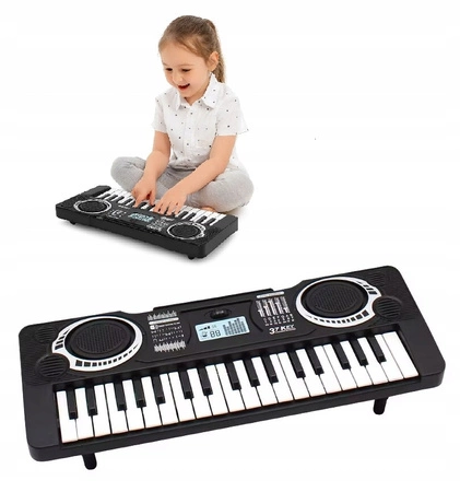 Pianinko Keyboard 37 klawiszy to świetna propozycja dla dzieci, które chcą rozpocząć swoją muzyczną przygodę. Zabawka w eleganckim, czarnym kolorze została wyposażona w 37 klawiszy, dzięki czemu pozwala na tworzenie prostych melodii i naukę gry od podstaw. Klawiatura została zaprojektowana tak, aby była wygodna w użytkowaniu i przyjazna dla małych dłoni.