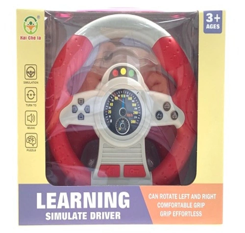 KIEROWNICA MALUCHA Z PRZYSSAWKĄ CZERWONA, pak 36/18, intuicyjna zabawka dla najmłodszych, różne kolory, dwa duże guziki, zabawka z dźwiękiem, w zestawie przyssawka i pasek pomocny w stabilizacji kierownicy, wymagane baterie: 2 x AA (nie są załączone do
