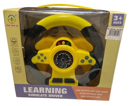 intuicyjna zabawka dla najmłodszych, różne kolory, dwa duże guziki, zabawka z dźwiękiem, w zestawie przyssawka i pasek pomocny w stabilizacji kierownicy,