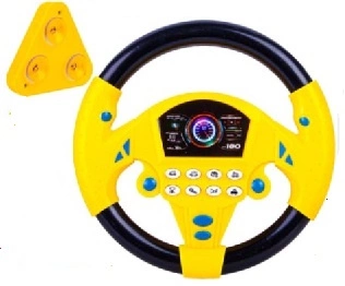KIEROWNICA Z PRZYSSAWKĄ ŻÓŁTO CZARNA Z DŻWIĘKAMI- WOREK 144/72 wymiar sztuki: 20x20x3 cm baterie 2 xAA (nie są załączone do zestawu) waga: 165 g