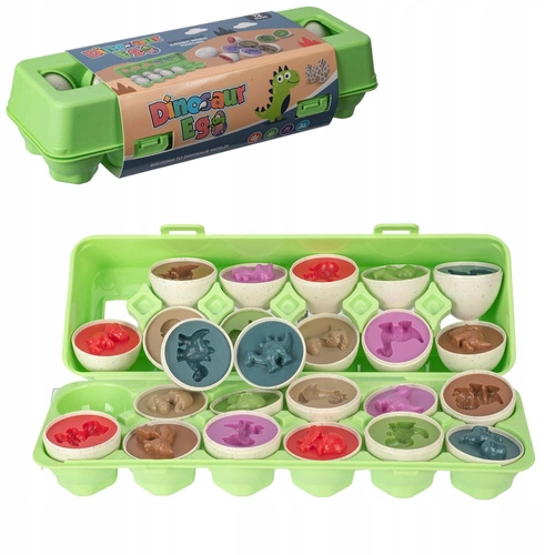 Klocki Jajka Edukacyjne 12 Szt Nauka Kształtów Kolorów Dinozaury Montessori