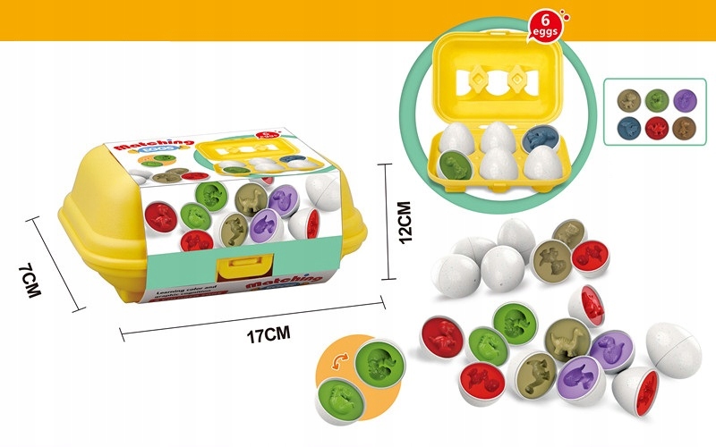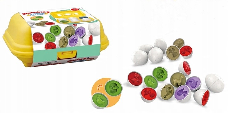 Zawartość zestawu: 6 edukacyjnych jajek z połówkami do dopasowywania
