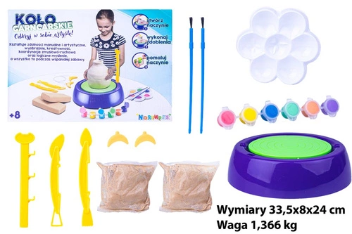 KOŁO GARNCARSKIE Z FARBKAMI NA SZTALUDZE I GLINĄ