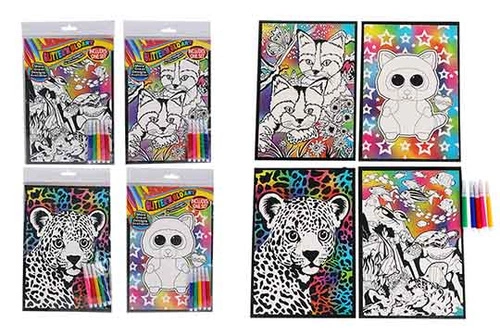 KOLOROWANKA BROKATOWA +5 PISAKÓW FOLIA*12 pak 384 18x 25 cm 4 wzory -ocean, szopy, pantera, pada