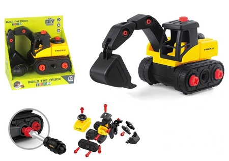 KOPARKA Z ŁYŻKĄ DO SKRĘCANIA, pak 24 model z serii Składanych Pojazdów Budowlanych, koparka zbierakowa do rozkręcenia i skręcenia, wymiary pojazdu: 21 x 13,5 x 14 cm wymiary opakowania: 20 x 13,5 x 19 cm
