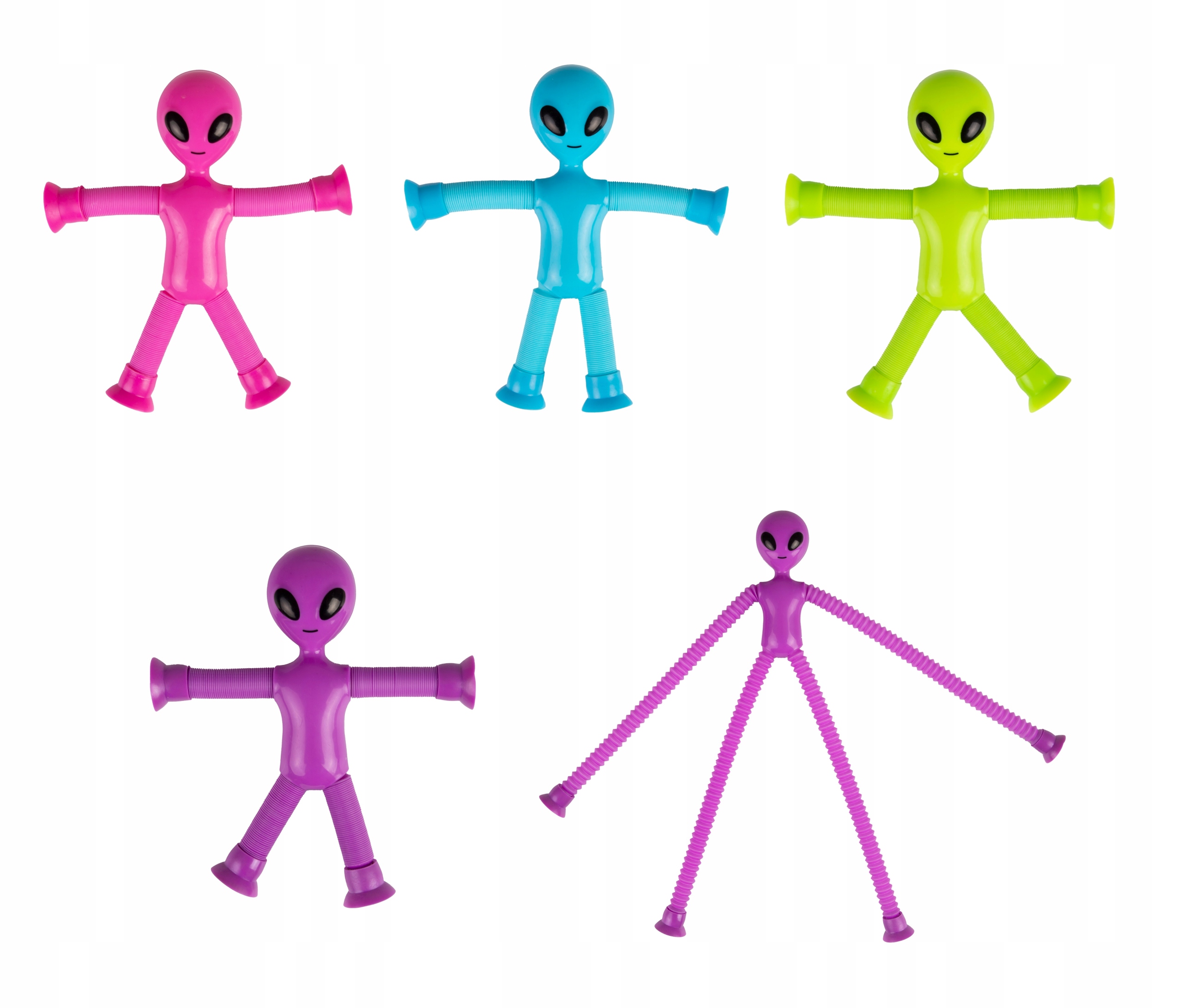 - Rozciągliwe kończyny – kosmita posiada elastyczne, rozciągliwe nogi, które można wyginać na różne sposoby, dostarczając mnóstwo frajdy.