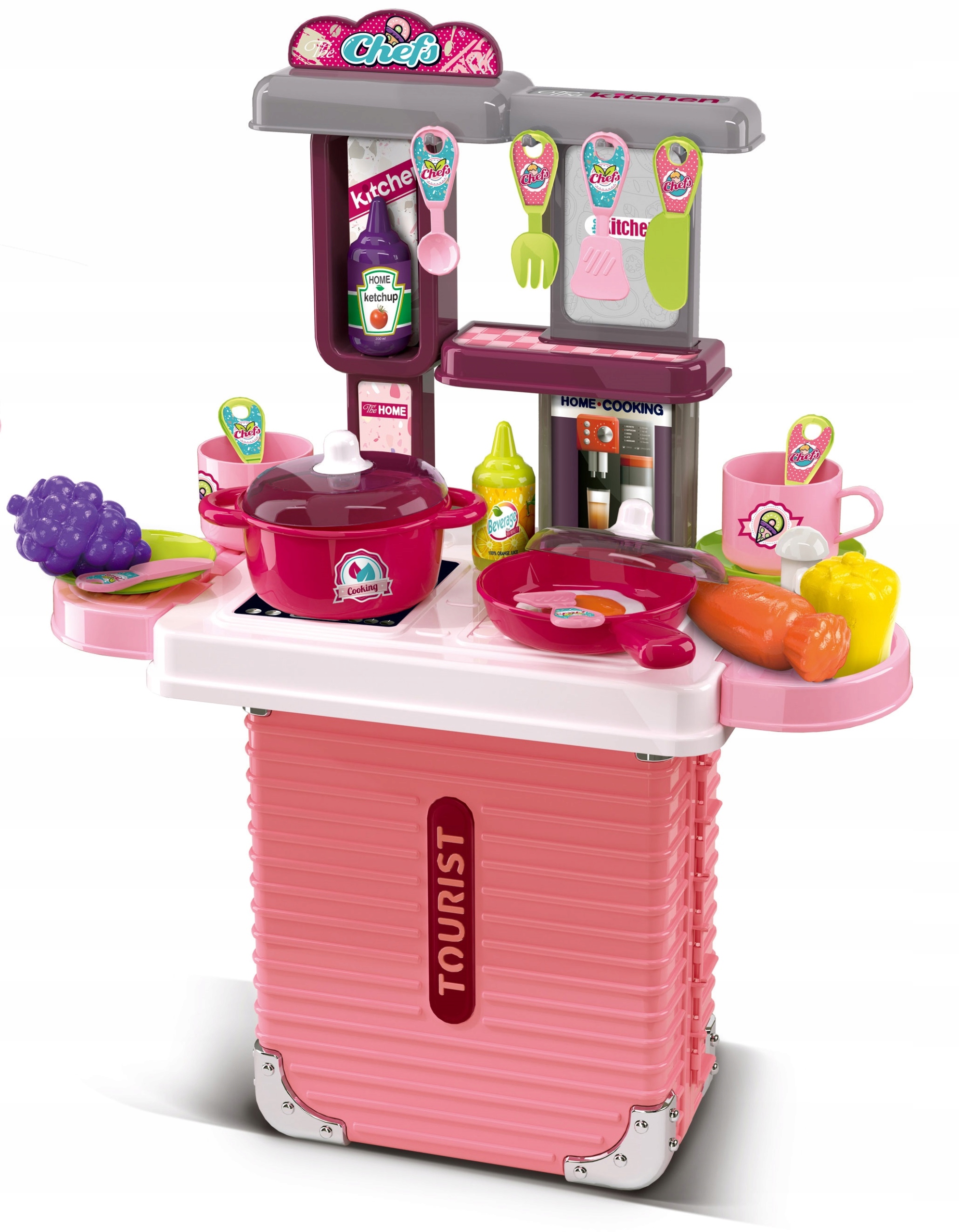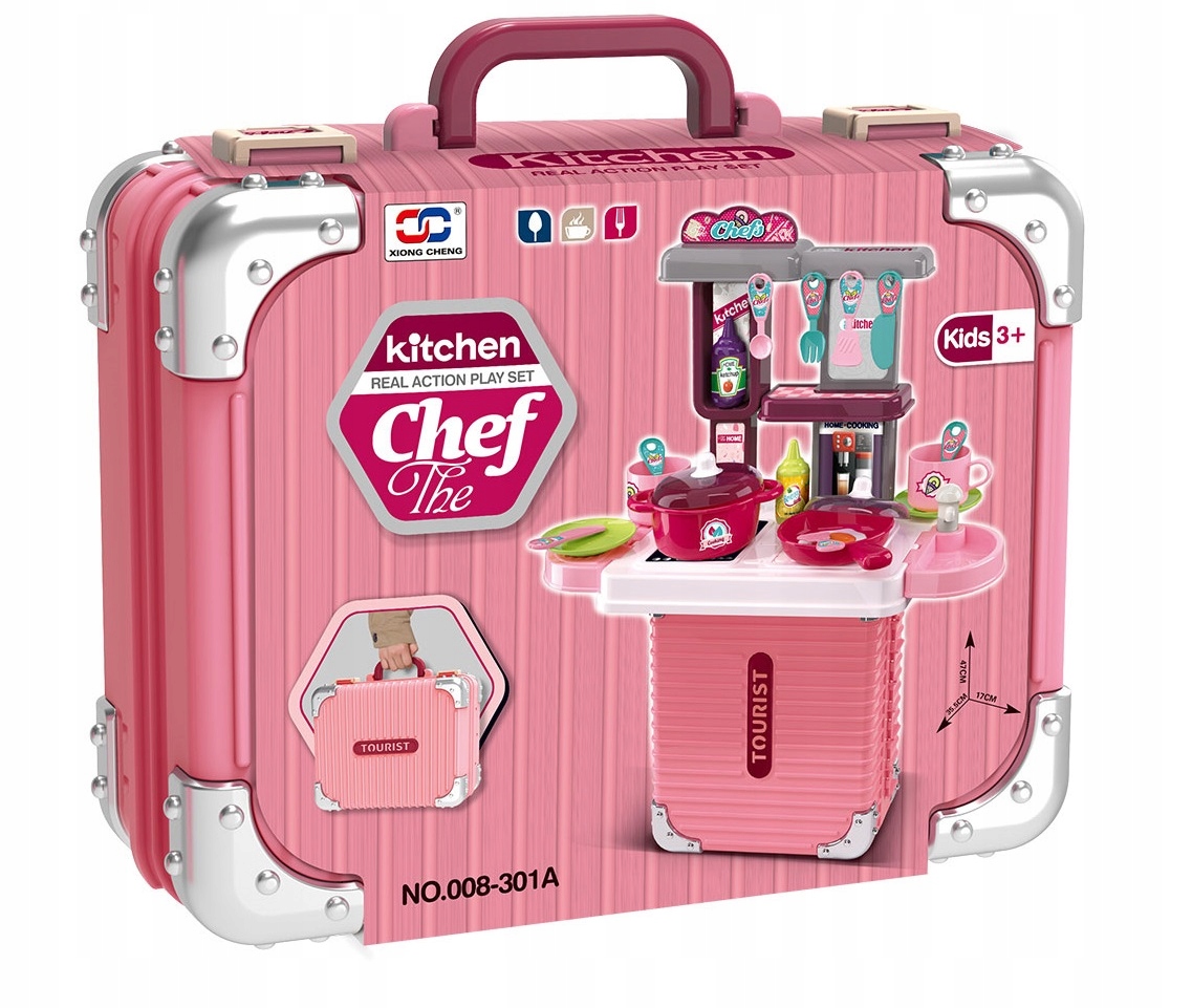 Kuchnia Dla Dzieci W Przenośnej Różowej Walizce Z Akcesoriami Zestaw