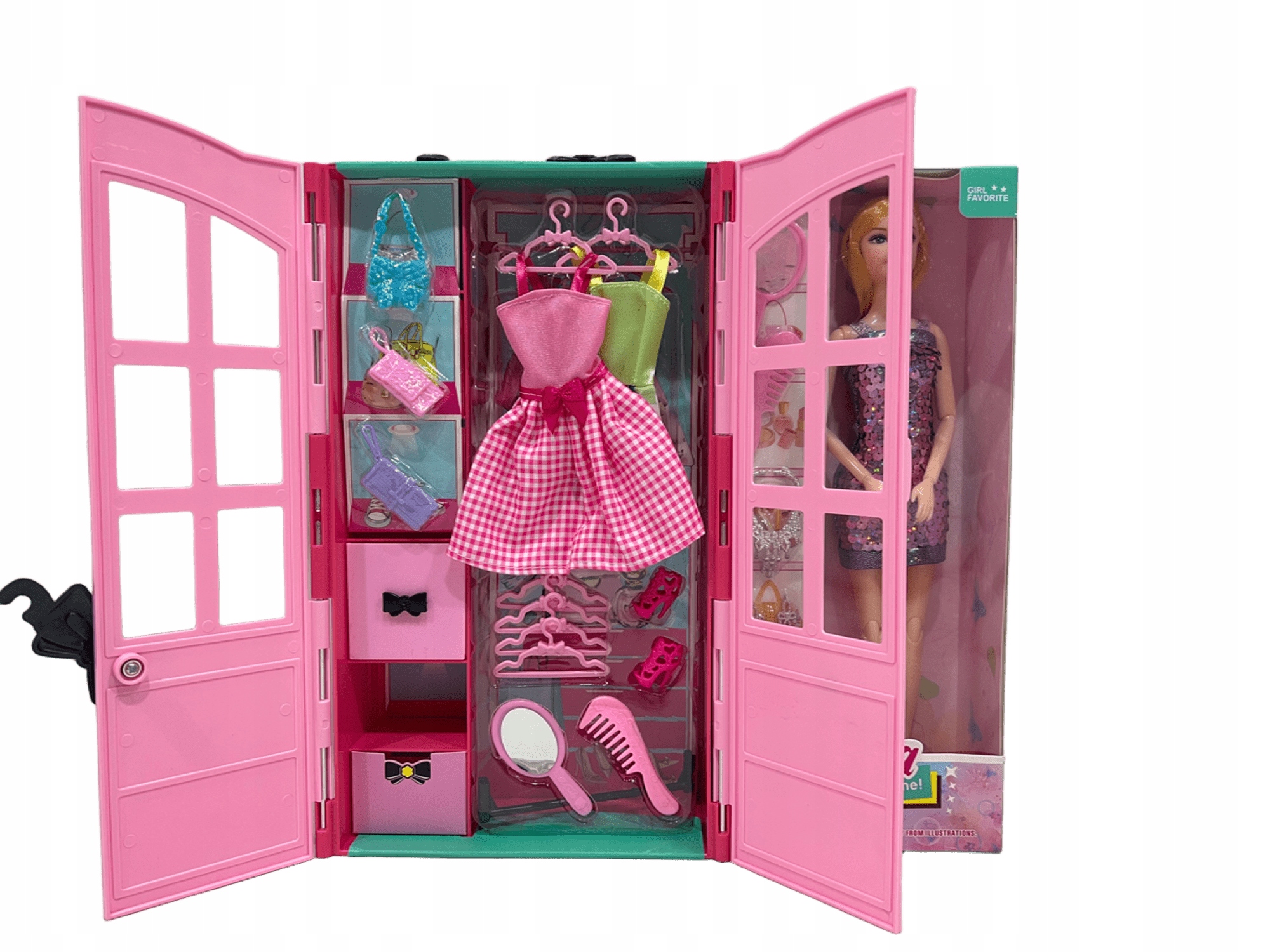 Dodatkowo w zestawie znajduje się szczotka, która pozwoli zadbać o fryzurę lalki i nadać jej wyjątkowy wygląd. Pudełko od lalki to otwierana szafa-walizka, co czyni zabawę jeszcze bardziej ekscytującą, a jednocześnie zapewnia łatwe przechowywanie i transport. Dzięki różowej szafie, dzieci mogą przechowywać ubrania i akcesoria, rozwijając swoją kreatywność podczas zabawy w modę.