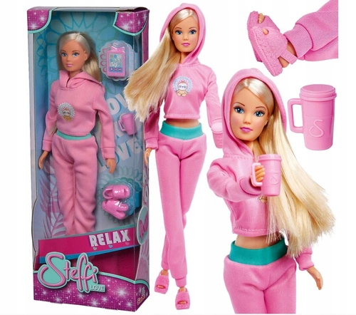 Nasza cudowna lalka Steffi ubrana w różowy dres idzie prosto na siłownię. Każda mała dziewczynka marzy o lalce w blond włosach. Tu ubrana bardzo wygodnie pokaże naszym dzieciom, że ćwiczenia są bardzo ważne. Stefii zabiera ze sobą oczywiście kubek z napojem by ugasić pragnienie po ćwiczeniach lub długim spacerze.