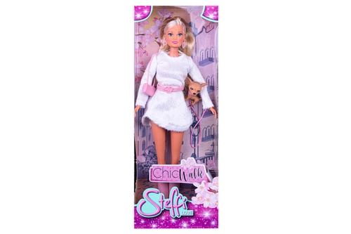LALKA STEFFI Z PIESKIEM CIHUAHUS W FUTRZANEJ SUKIENCE KARTON