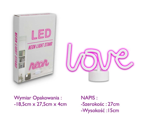 LAMPA NEON STOJĄCA BIURKOWA NAPIS LOVE