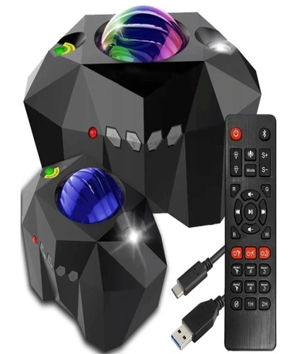 LAMPKA PROJEKTOR ŚWIETLNY ZORZA POLARNA Z PILOTEM. pak 27 czarna konsola z szarymi guzikami, w zestawie pilot