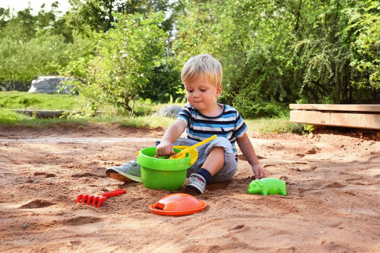 Zestaw zabawek Happy Sand dla dzieci od 2 lat, z wiadrem na piasek, sitkiem, łopatką do piasku, grabką z tworzywa sztucznego, zestaw do piasku