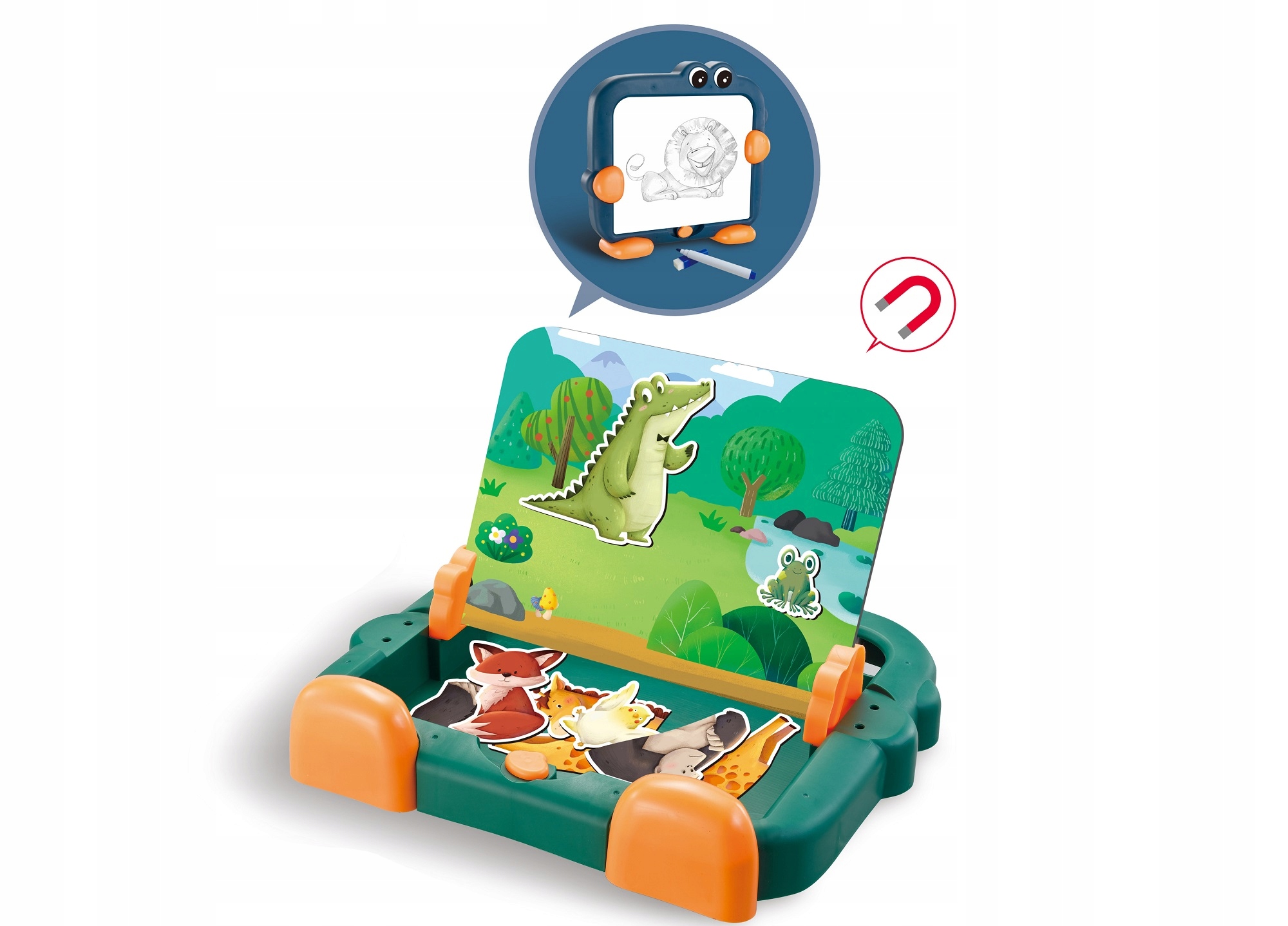Układanka magnetyczna ze zwierzętami to połączenie kreatywnej zabawy i nauki, które rozwija wyobraźnię i zdolności manualne dziecka. Kolorowe magnesy w kształcie zwierząt pozwalają tworzyć różne scenki i historie, co stymuluje kreatywność oraz wspiera rozwój mowy i logicznego myślenia.