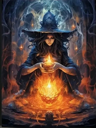 MALOWANIE PO NR. WIEDŹMA NAD PALENISKIEM PAK 15 50X40 CM