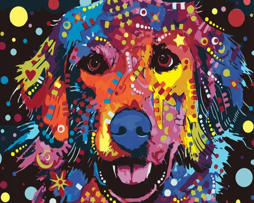 Malowanie Po Numerach 50X40 Cm Kreatywne Z Ramą Pies Kolorowe Wzory