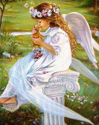 Malowanie Po Numerach Aniołek Z Rudym Kotem 40X50 Cm Na Ramie Kreatywne