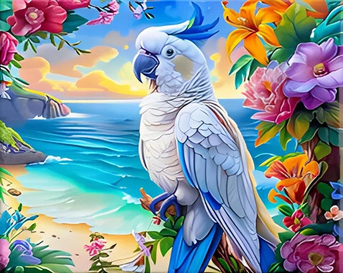 Malowanie Po Numerach Biała Papuga Ara Na Tropikalnej Wyspie 50x40 Z Ramą