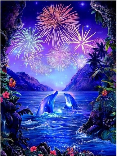 Malowanie Po Numerach Delfiny I Sztuczne Ognie 50X40 Cm Rama Kreatywne