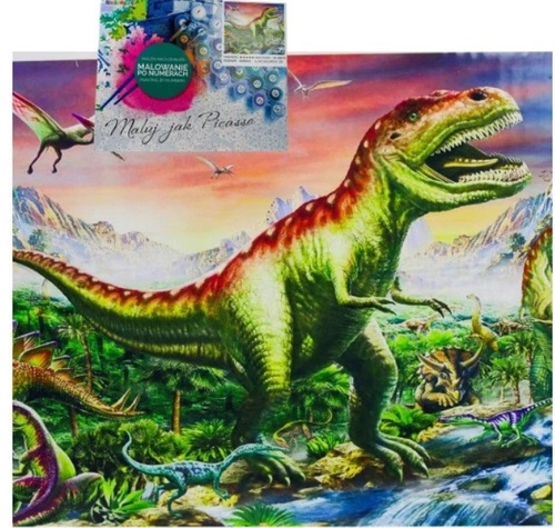 Malowanie Po Numerach Dinozaur T-Rex Nad Rzeką Z Ramą 50x40 Cm