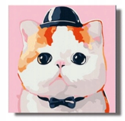 Malowanie Po Numerach Dla Dzieci Kot W Kapeluszu I Muszce 20x20 Rama
