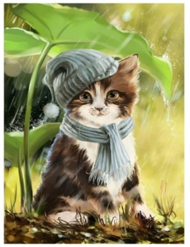 MALOWANIE PO NUMERACH DLA DZIECI KOTEK W CZAPCE KREATYWNE 30x40 RAMA