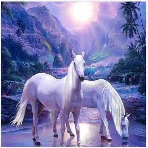 Malowanie Po Numerach Dwa Białe Konie Fiolet 50X40 Cm Na Ramie Kreatywne