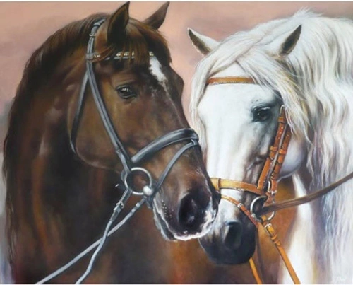 MALOWANIE PO NUMERACH DWA PRZYTULONE KONIE 50x40 CM Z RAMĄ KREATYWNE