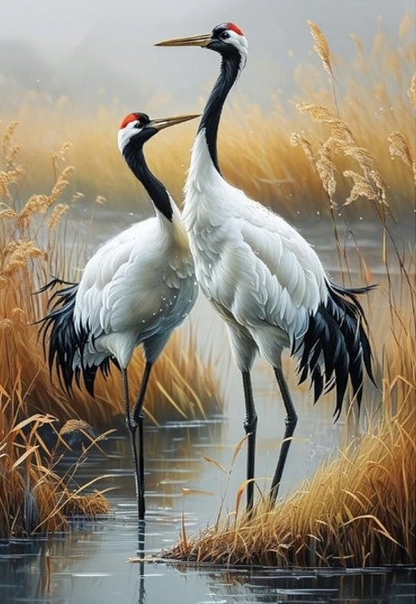 Malowanie Po Numerach Dwa Żurawie Ptaki 40X50 Cm Na Ramie Kreatywne