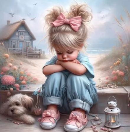 Malowanie Po Numerach Dziewczynka Obrażona Na Murku 40X50 Z Ramą