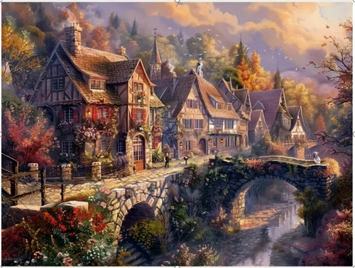 Malowanie Po Numerach Górskie Miasteczko Nad Wodą 50x40 Z Ramą