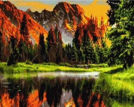 Malowanie Po Numerach Góry Nad Stawem Jesienią 40x50 Na Ramie