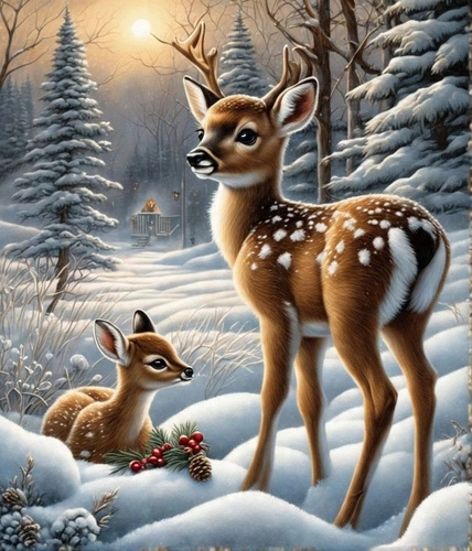 Malowanie Po Numerach Jelonki W Zaśnieżonym Lesie 40X50 Z Ramą