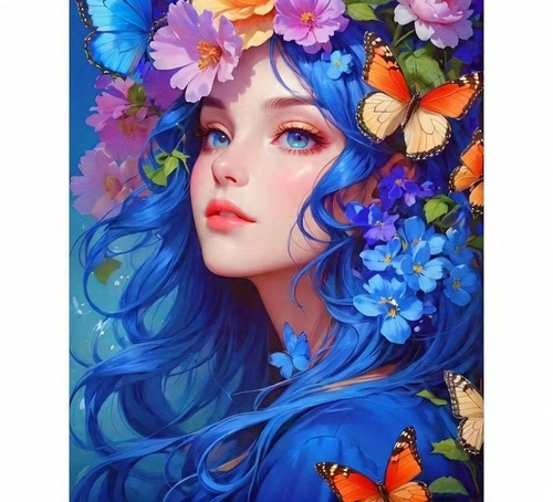 Malowanie Po Numerach Kobieta W Kwiatach Manga 50X40 Cm Z Ramą Kreatywne