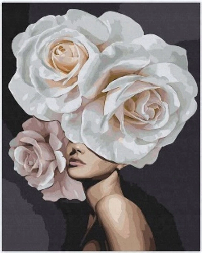 Malowanie Po Numerach Kobieta Z Białymi Różami 50X40 Cm Z Ramą Kreatywne