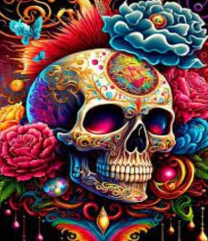 Malowanie Po Numerach Kolorowa Czaszka z Kwiatami 50x40 Z Ramą Kreatywne
