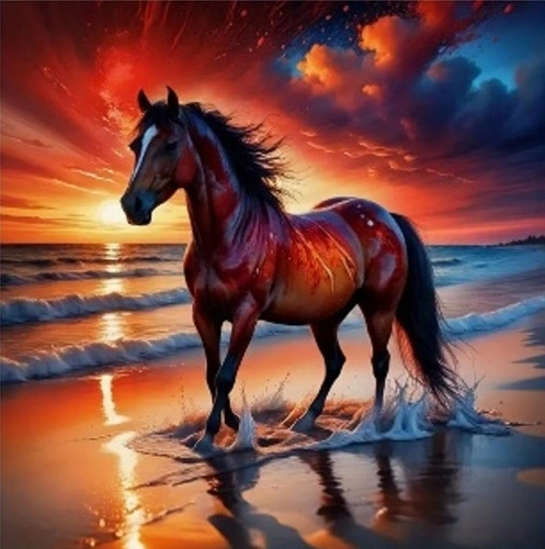 Malowanie Po Numerach Koń Nad Brzegiem Na Tle Słońca 40X50 Cm Na Ramie