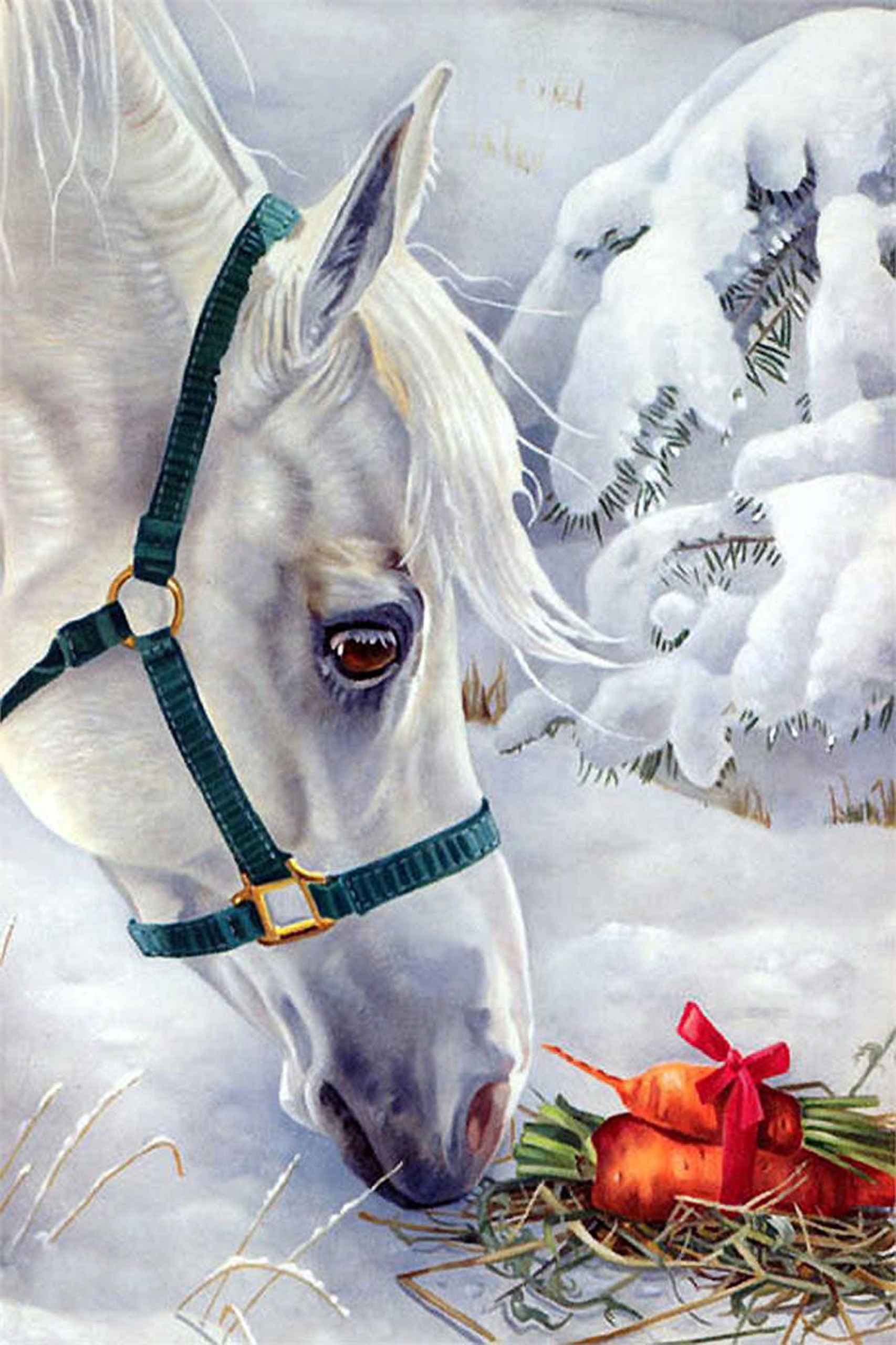 Malowanie Po Numerach Koń, Śnieg 50X40 Cm Na Ramie