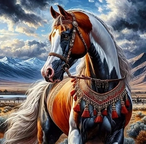 Malowanie Po Numerach Koń W Indiańskiej Uprzęży 40X50 Z Ramą Kreatywne