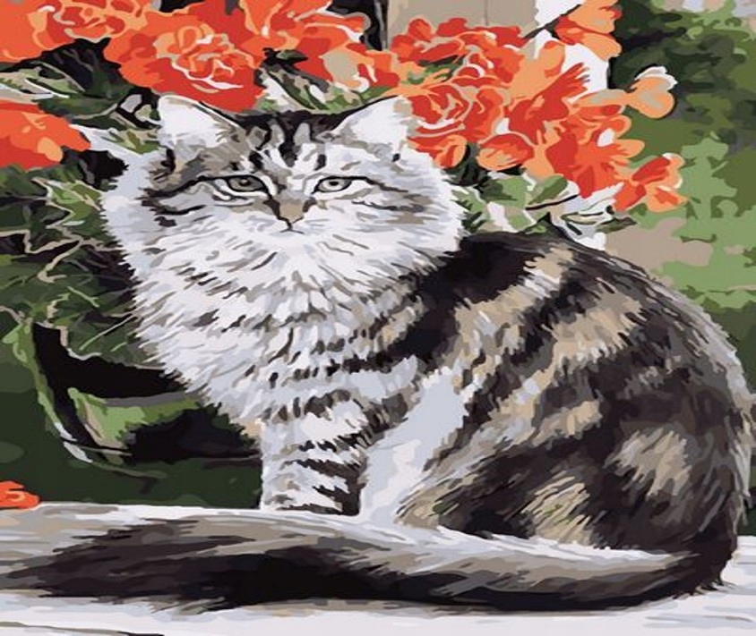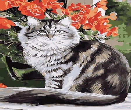 Malowanie Po Numerach Kot I Kwiaty 40x50 Na Ramie
