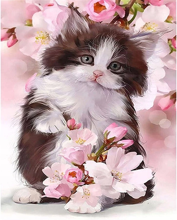 Malowanie Po Numerach Kot W Różowych Kwiatach 50X40 Z Ramą