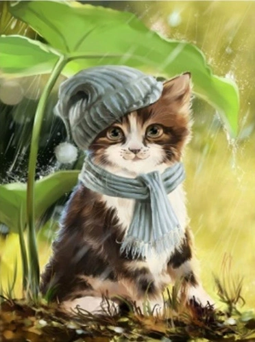 Malowanie Po Numerach Kotek W Czapce Pod Liściem 50X40 Z Ramą