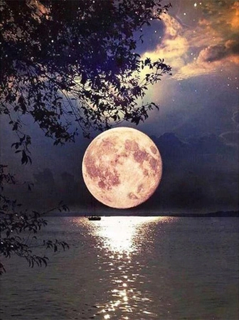 Malowanie Po Numerach Księżyc W Pełni Nad Jeziorem 50X40 Z Ramą