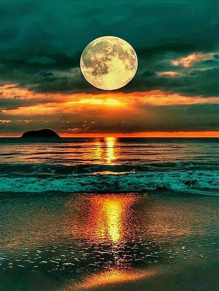 Malowanie Po Numerach Księżyc W Pełni Nad Oceanem 40X50 Z Ramą
